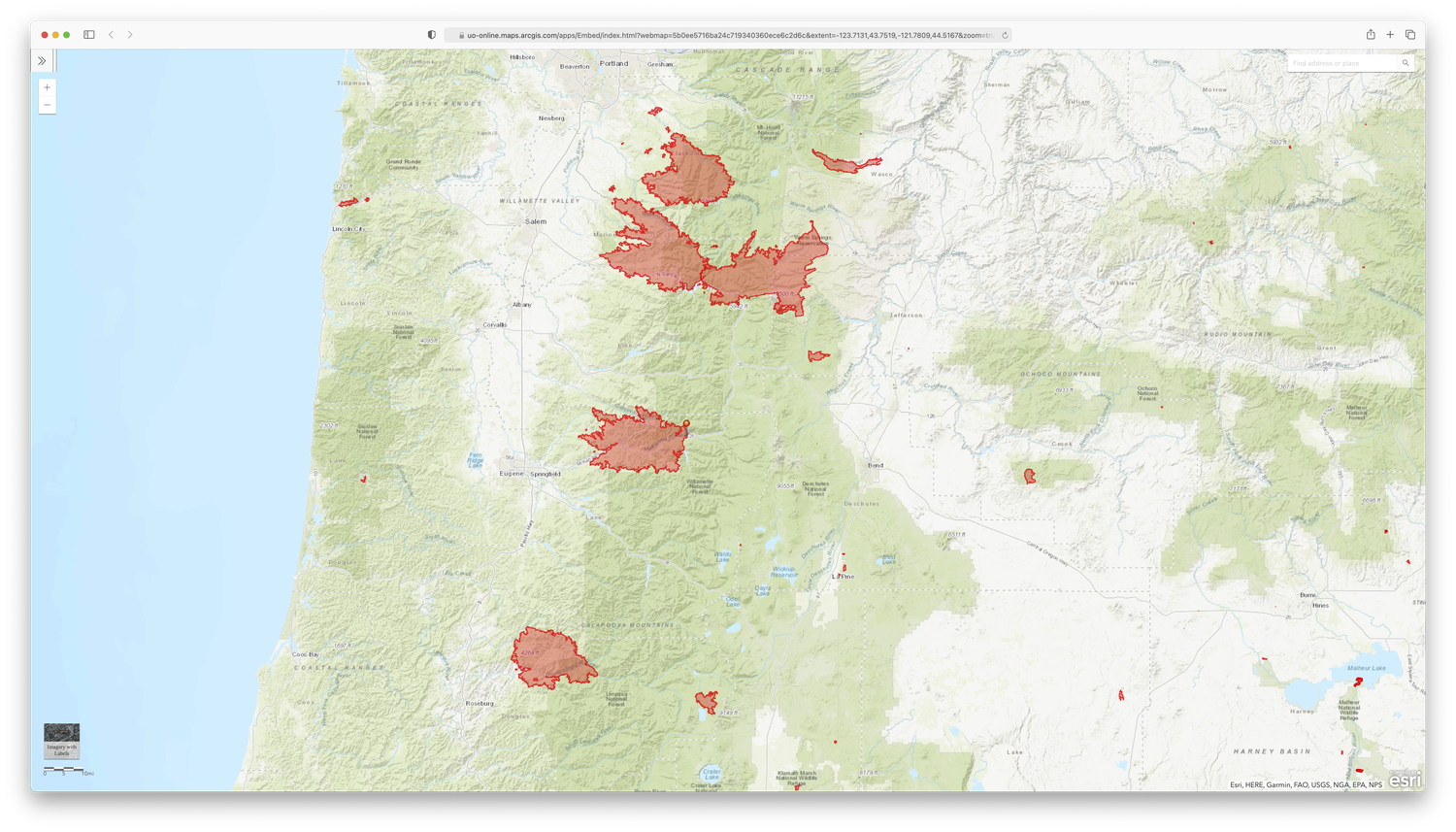 Scope and scale: Within 72 hours after the first spark, the fire burned 170,000 acres — almost twice the Portland Metro Area. The fire grew west through the McKenzie River Valley, widening as it climbed up ridgelines to the north and south of Highway 126, which runs along the north bank of the McKenzie River.